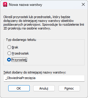Określa dodawanie tekstu identyfikującego do nazwy warstwy zawierającej geometrię komponentu, gdy wstawiany jest blok przekroju.