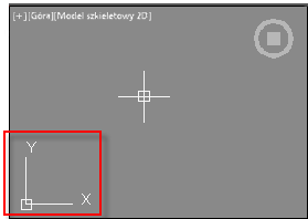 W obszarze rysunku wyświetlana jest ikona reprezentująca osie XY prostokątnego układu współrzędnych, zwanego lokalnym układem współrzędnych, czyli LUW.