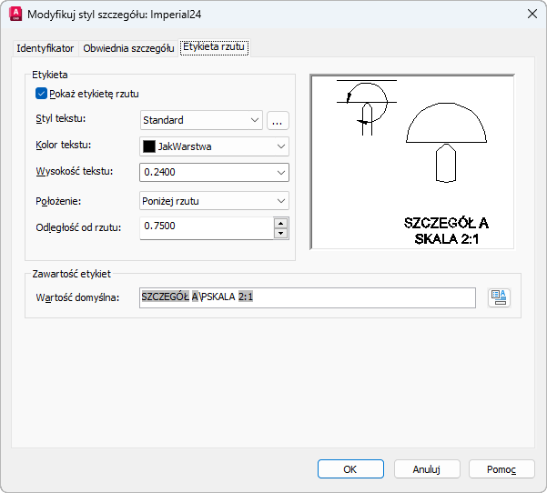 Ustawia widoczność etykiet, właściwości tekstu etykiety, położenie etykiety i zawartość etykiet widoku szczegółów.