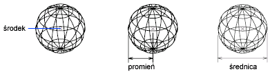 Można utworzyć sferę, określając punkt środkowy oraz promień. Można sterować gładkością brył, takich jak