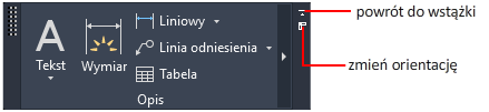 Panel wstążki można wyciągnąć na obszar rysunku lub dodatkowy monitor. Panel ruchomy pozostanie otwarty, dopóki nie nastąpi powrót do wstążki, nawet w przypadku przełączenia karty wstążki.