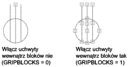 Steruje wyświetlaniem uchwytów w blokach. (GRIPBLOCK — zmienna systemowa)