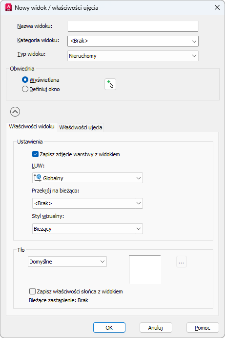 Zapisuje nowy widok i zarządza jego właściwościami.