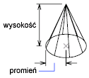 Tworzy podstawę stożka za pomocą określonego punktu środkowego.