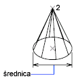 Definiuje średnicę podstawy stożka za pomocą określenia dwóch punktów.