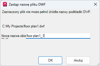 Okno dialogowe Zastąp nazwę pliku DWF