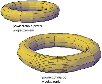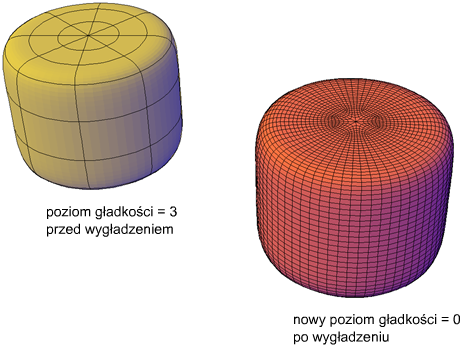 Poza zwiększaniem liczby powierzchni rozdrabnianie obiektów siatki przywraca poziom bazowy gładkości. W związku z tym obiekt może wyglądać na wygładzony, ale jego poziom gładkości może być nadal równy 0 (zero).