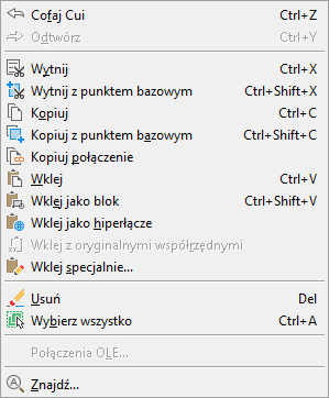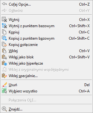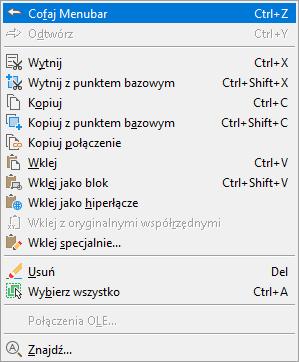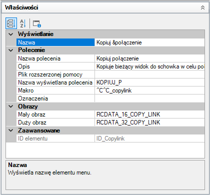 Poniżej przedstawiono wynik dodania znaku tyldy (~) do właściwości Nazwa elementu menu Kopiuj łącze występującego w menu Edycja.