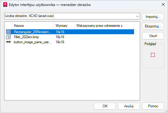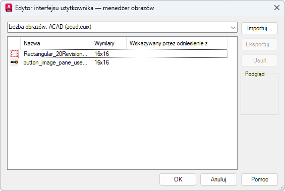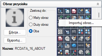 Obrazy niestandardowe dla poleceń można importować i eksportować.