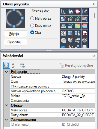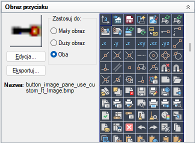 Wybierz obraz z listy obrazów, a jego nazwa zostanie przypisana do właściwości obrazu Mały obraz i/lub Duży obraz wybranego polecenia.