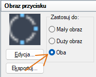 W panelu Obraz przycisku, w obszarze Zastosuj do wybierz jedną z trzech opcji przypisania: Mały obraz, Duży obraz lub Obydwa.