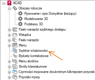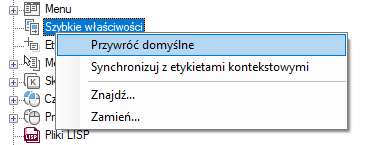 - Na karcie Dostosuj, na panelu Dostosowywane pliki: <nazwa pliku> kliknij prawym przyciskiem myszy opcję Szybkie właściwości.