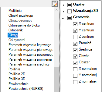 Sterowanie wyświetlaniem właściwości obiektu