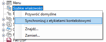 Aby zsynchronizować szybkie właściwości z etykietami kontekstowymi
