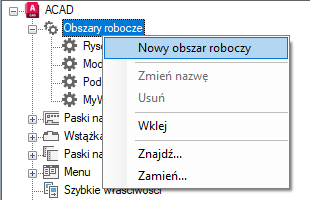U dołu elementów węzła Obszary robocze umieszczany jest nowy pusty obszar roboczy (o nazwie Obszarroboczy1).