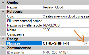 - W panelu Właściwości kliknij pole Klawisze, a następnie kliknij przycisk […], aby otworzyć okno dialogowe Klawisze skrótów.