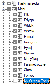 - W panelu Dostosowywane pliki: <nazwa pliku> kliknij znak plus (+) obok węzła Menu, aby go rozwinąć.