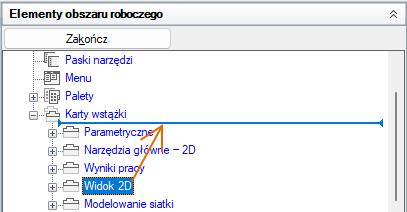 - W panelu Zawartość obszaru roboczego kliknij znak plus (+) obok węzła Karty wstążki, aby go rozwinąć.