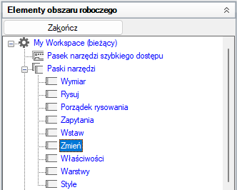 - Na panelu Zawartość obszaru roboczego kliknij węzeł drzewa Pasek narzędzi szybkiego dostępu.