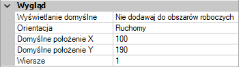 - W polu Rzędy wprowadź liczbę. W miarę możliwości wprowadź liczbę wierszy, w których będą zawijane przyciski na pasku narzędzi. Wartością domyślną jest 0. (Dostępne, tylko gdy dla opcji Orientacja jest wybrane ustawienie Ruchoma).