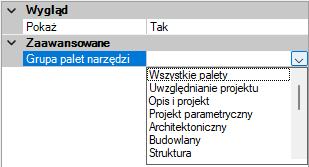 - W polu Grupa palet narzędzi wybierz jedną z dostępnych grup palet narzędzi, aby powiązać ją z kartą wstążki.