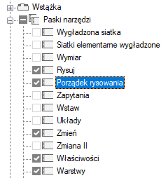 - W panelu Dostosowywane pliki: <nazwa pliku> kliknij znak plus (+) obok węzła Paski narzędzi, aby go rozwinąć.