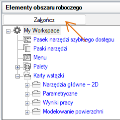 - W panelu Zawartość obszaru roboczego kliknij Zakończ.