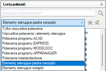 Na panelu Lista poleceń jest wyświetlana tylko lista elementów sterujących paska narzędzi.