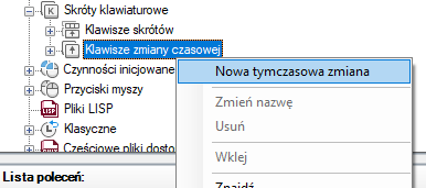Nowa zmiana czasowa (o nazwie ZmianaCzasowa1) zostanie umieszczona pod węzłem Klawisze zmiany czasowej.