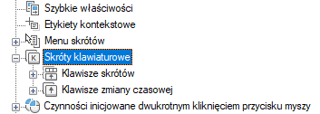- Na karcie Dostosuj, w panelu Dostosowywane pliki: <nazwa pliku> kliknij znak plus (+) obok węzła Skróty klawiaturowe, aby go rozwinąć.