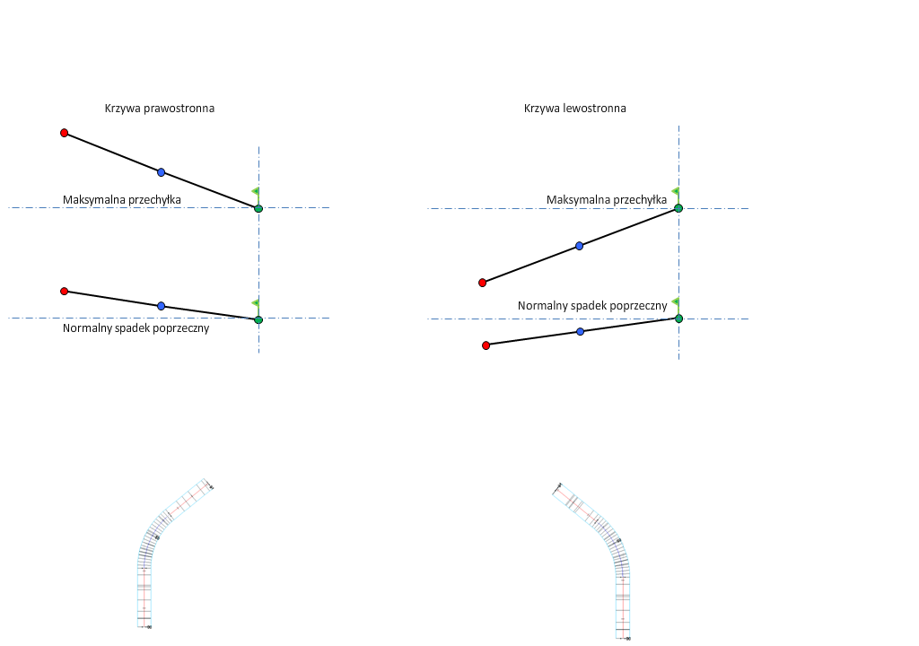 Objaśnienia do diagramów przechyłki zawiera temat Informacje o metodach obrotu osi przechyłki.