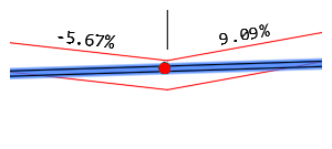 Można użyć uchwytów w celu ręcznej edycji rurociągów w widoku profilu.