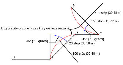 | promień | Odległość od punktu centralnego łuku. Tę wartość należy wprowadzać w bieżących jednostkach odległości obowiązujących w bazie danych. Aby rysować łuk w kierunku przeciwnym do ruchu wskazówek zegara, należy wprowadzić ujemny promień. |