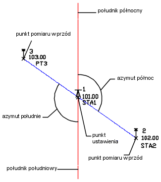 Kąt mierzony od południka odniesienia w kierunku zgodnym z ruchem wskazówek zegara. Nazywany także azymutem północnym. Jego wartość może wynosić od 0 do 360 stopni. Azymut ujemny jest przeliczany na wartość w kierunku zgodnym z ruchem wskazówek zegara.