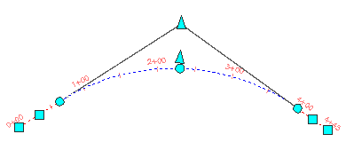 Uwaga: Tę procedurę można wykonać tylko wtedy, gdy na linii trasowania są wyświetlane oznaczone punkty przecięcia dwóch ustalonych stycznych, które są łączone przez dowolny łuk lub grupę krzywych.