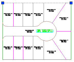 Segment działki, dla którego ma zostać utworzona etykieta rozciągnięcia, powinien być jednym ciągłym elementem. Na przykład na rysunku przykładowym Parcel-3.dwg widać, że górna część grupy działek tworzy jeden segment, dlatego możliwe jest zastosowanie etykiety rozciągnięcia.