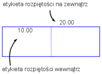Nawet jeśli dla etykiety została ustawiona opcja Rozciągnij segmenty zewnętrzne, musi zostać umieszczona na zewnątrz działki, aby obowiązywała dla rozciągnięcia