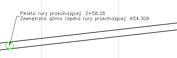Jeśli przecinająca rura ciśnieniowa zostanie przeniesiona do innej pikiety wzdłuż linii trasowania, etykiety zostaną zaktualizowane o nowe informacje o pikiecie i rzędnej.
