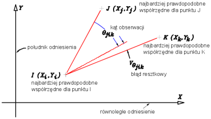 - Xj, Yj = najbardziej prawdopodobne współrzędne punktu J