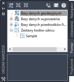 Zawartość karty Pomiar nie określa danego rysunku. Karta obejmuje informacje o danych pomiarowych przechowywanych w folderze projektów programu Autodesk Civil 3D i umożliwia dostęp do tych danych na różnych rysunkach.