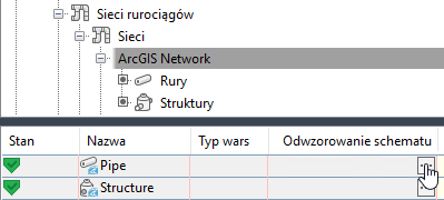 Konfigurowanie odwzorowania schematu sieci rurociągów po przeniesieniu danych ArcGIS do rysunku