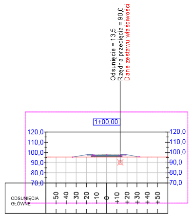 Poniższa ilustracja przedstawia przykład uwzględnienia danych zestawu właściwości (w kolorze czerwonym) w etykiecie przecięcia, gdzie „dane zestawu właściwości” reprezentują dane, które mają być zastosowane do linii charakterystycznej.
