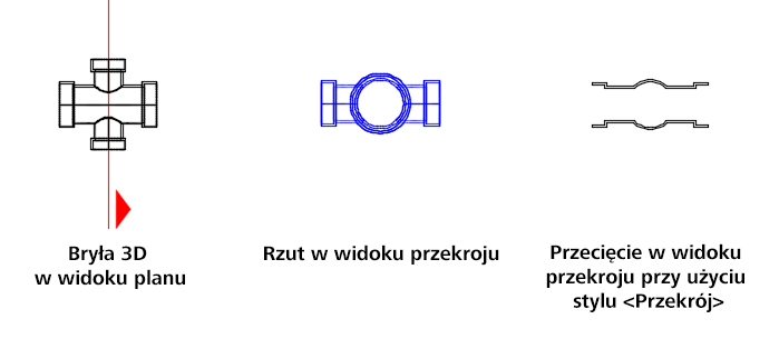 Obiekty przecięcia w widokach przekroju wykorzystują następujące style: