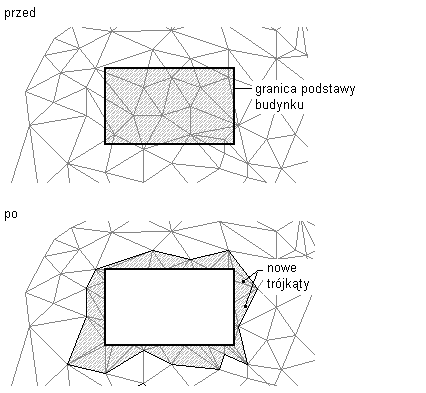 Obwiednia wpływa na widoczność trójkątów powierzchni wewnątrz niej.