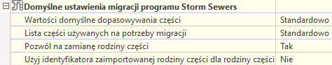 - Jeśli pierwotne skojarzenia rodziny części mają być zachowane w pliku STM, ustaw na Nie. Program Autodesk Civil 3D zachowa bieżącą rodzinę części programu Autodesk Civil 3D niezależnie od ustawień Domyślne ustawienia migracji programu Storm Sewers.