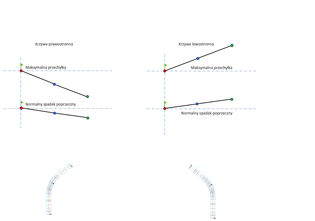 Objaśnienia do diagramów przechyłki zawiera temat Informacje o metodach obrotu osi przechyłki.