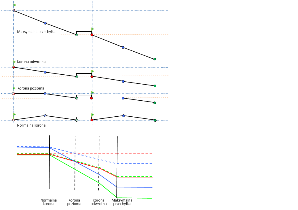 Zachowanie kształtu pasa rozdzielającego oznacza, że po zastosowaniu przechyłki pas zostanie podniesiony w celu dopasowania przechyłki. Ta opcja zachowuje kształt pasa rozdzielającego i podniesione lub opuszczone