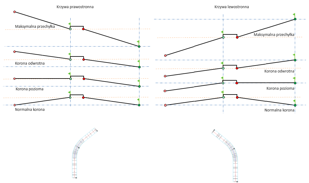 Zachowanie kształtu pasa rozdzielającego oznacza, że po zastosowaniu przechyłki pas zostanie podniesiony w celu dopasowania przechyłki. Ta opcja zachowuje kształt pasa rozdzielającego i podniesione lub opuszczone