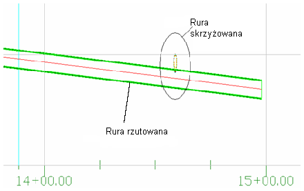 Rury przecinające widok profilu mogą być wyświetlane jako rury rzutowane lub jako skrzyżowania rur. Rury przecinające widok przekroju są zawsze wyświetlane jako skrzyżowania rur.