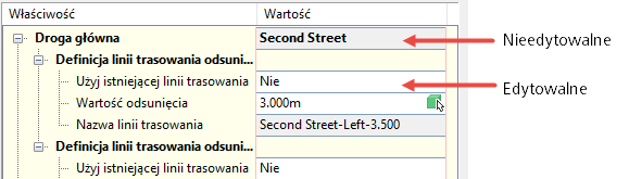 Cieniowanie właściwości niemożliwych do edycji: właściwości, które w oknach dialogowych edycji nie są możliwe do edycji, są wyświetlane z szarym (cieniowanym) kolorze tła. Właściwości możliwe do edycji są wyświetlane z białym (niecieniowanym) kolorem tła.